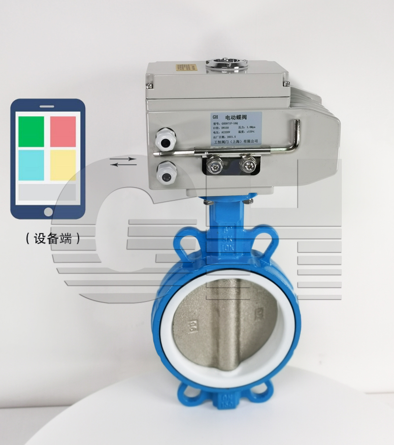GHWXD971F-10Q-4G型無線電動開關對夾式蝶閥/無線電動蝶閥是由角行程電動執行機構和蝶閥組成,開關型電動蝶閥是直接接通電源(AC220V或其他電源等級的電源)通過開關正、反導向來完成開關動作。并配有4G無線控制網卡,可手機實適遠程開關和調節,無需PLC,電動開關蝶閥結構簡單,體種小,重量輕,啟閉方便迅速、省力、流體阻力小,流通能力大,對常溫、干凈介質,可選用閥板加軟密封(橡膠圈、四氟圈)來減少泄漏(可達0.01%),高溫高壓工況可選用三偏心硬密封閥體。訂貨時要予以注明即可。它可廣泛應用于食品,環保,輕工,石油,化工,教學設備,造紙,電力等到行業的工業過程自動控制系統中。