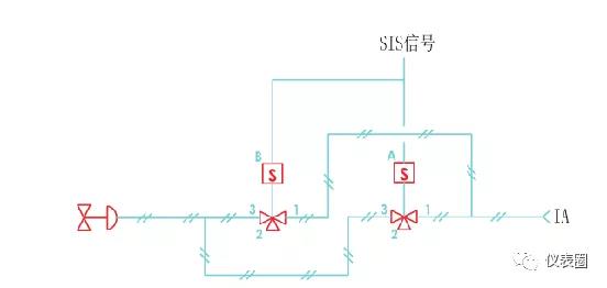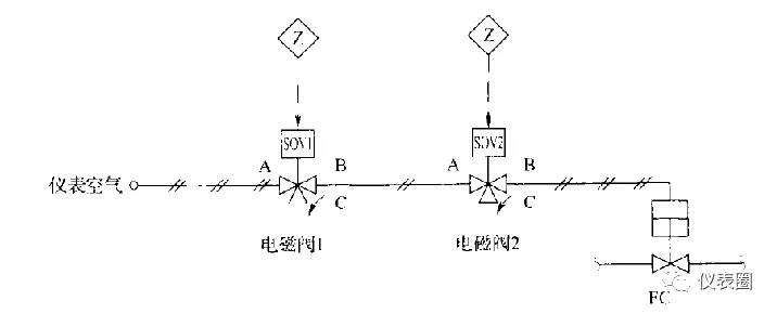 當要求高安全性時,電磁閥應按照“二取一”的方式配置,如下圖: