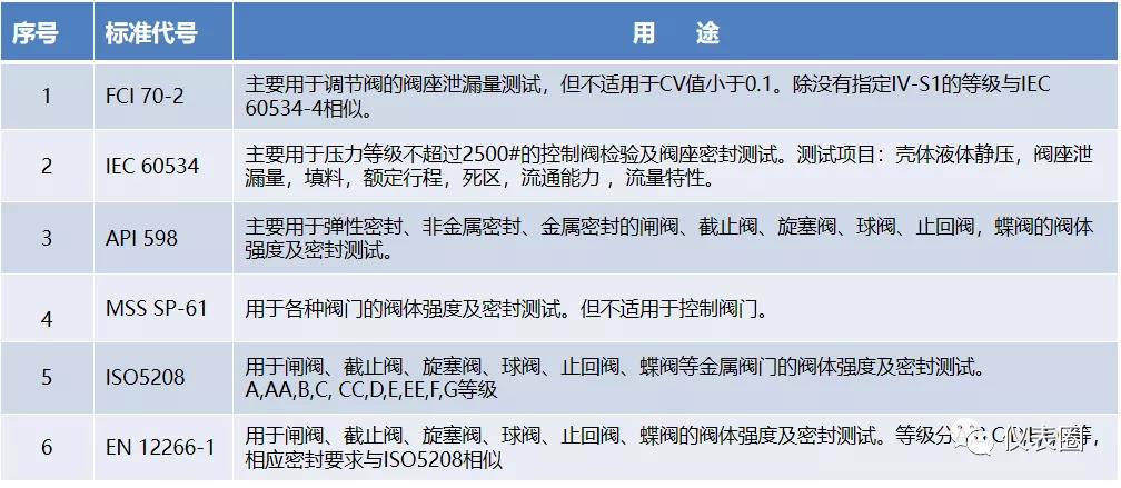 常用閥門內漏國內外主要標準有: