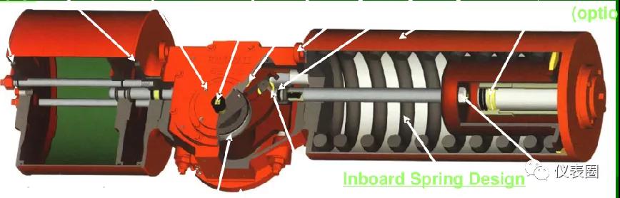 火災型執行機構在正常工況下可以遠程控制,但在火災發生時,如果該閥處于火災區,其執行機構可能會被損壞,這類執行機構通常采用彈簧復位型。具體做法有:連接開閥氣源的供風管一般采用耐日照的易熔斷線路,繞在執行機構周圍。發生火災時,氣路管路熔斷切斷氣源使閥門回到關閉狀態。另外一種做法是,在執行機構上加易熔塞,當火災發生時,易熔塞熔化,氣缸失氣閥門關閉。易熔塞一般采用耐溫135-500°F(57-260℃)間金屬制作而成(中石化設計意見建議是250 ℃)。