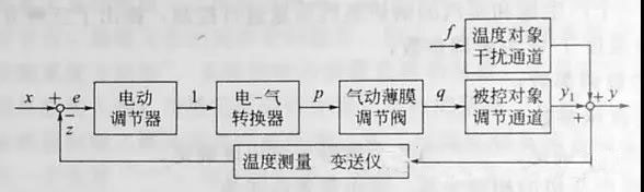 ①x是給定值、z是測量值(溫度)、e是偏差(e=x-z),f是干擾、y為被調參數(溫度)的真實值。