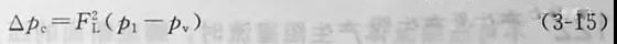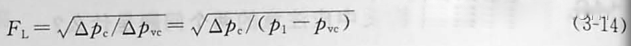 因為FL定義公式(3-14)中的壓差△Pc就是該試驗閥產(chǎn)生阻塞流動的臨界壓差。這樣,當△P<△Pc時為正常流動,當△P≥△Pc時為阻塞流動。從式(3-14)中可解出液體介質(zhì)的△Pc為