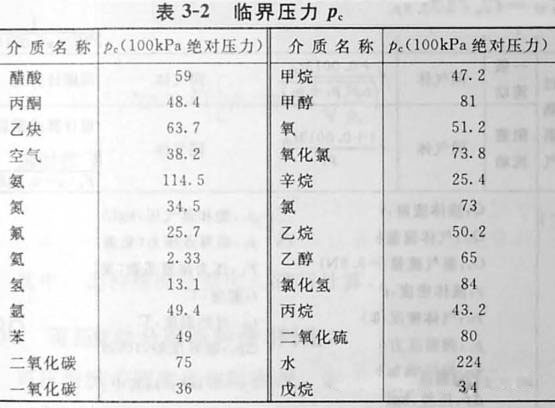 (3-18)式中Pc——液體勢力學臨界點壓力,見表3-2;