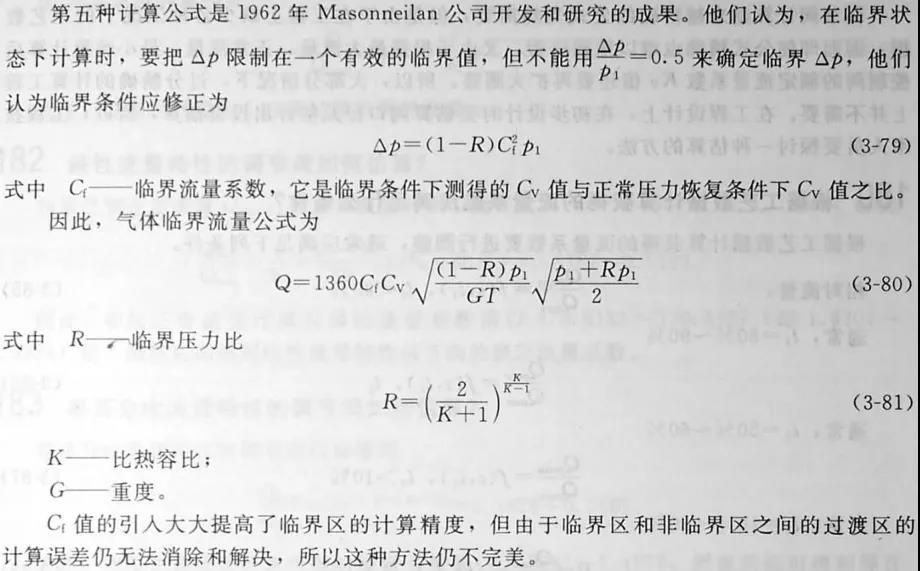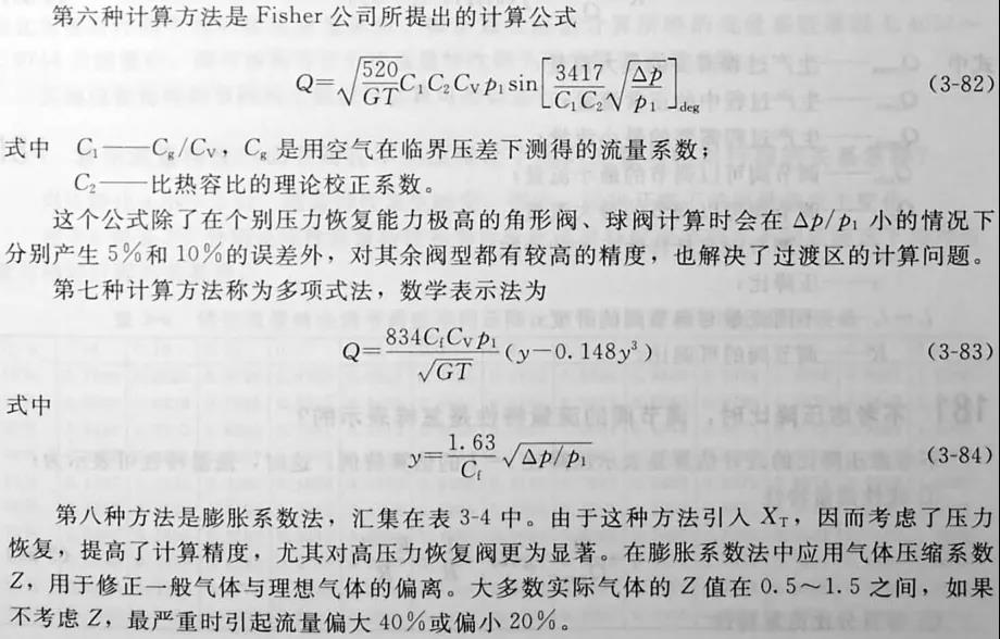 對(duì)流量系數(shù)公式的分析與比較關(guān)鍵在于對(duì)可壓縮流體公式的比較。從表3-5中看出不同計(jì)算公式的考慮因素各不相同,但畢竟都以原來(lái)的液體計(jì)算公式為基礎(chǔ)。可以把這些公式分成早期公式和近期公式兩大類(lèi)型。在所列的8種公式中,前4種屬于早期,而后4種屬于近期。