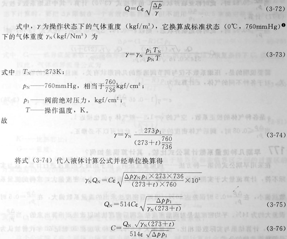 在早期的計(jì)算公式中,流量系數(shù)用CV或C表示,并用重度(ϒ )代替密度(ρ)計(jì)算。因此,使用和理解這些公式都要注意它的單位。