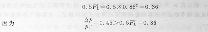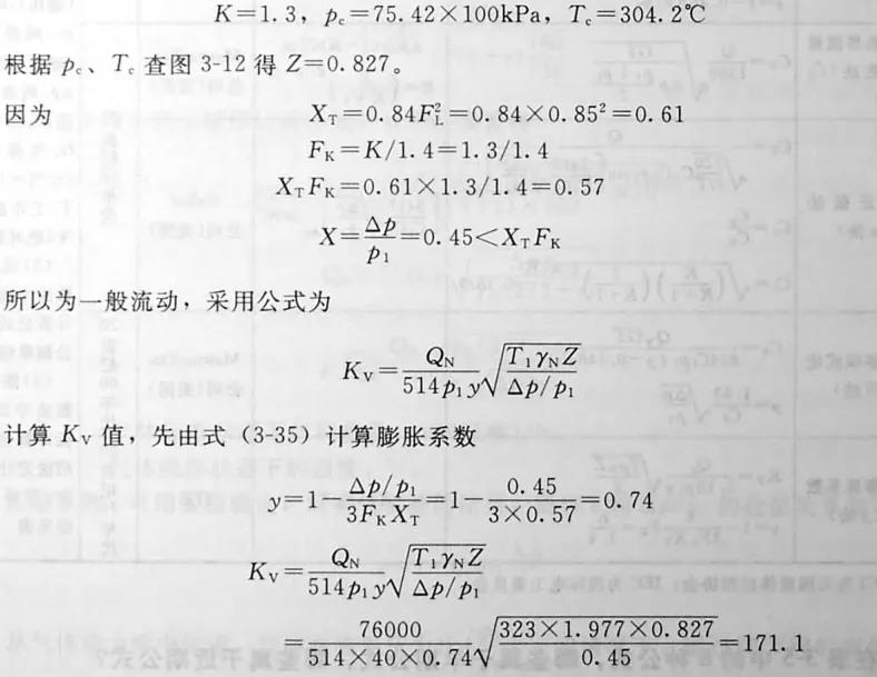 蒸氣質(zhì)量流量Ws=35000kg/h,p1=4050kPa,p2=5000kPa,絕熱指數(shù)K=1.3,t=368℃,ρs=14.33kg/m3。若選用套筒調(diào)節(jié)閥,求流量系數(shù)。解 查表3-1得,XT=0.75