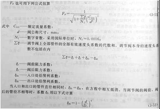 Fp是流過(guò)裝有附接管件調(diào)節(jié)閥的流量與不裝有附接管件時(shí)的流量之比。可以通過(guò)試驗(yàn)確定Fp,其壓差值以不出現(xiàn)阻塞流為限。兩種安裝情況的流量均在不產(chǎn)生阻塞流的同一試驗(yàn)條件下測(cè)得。