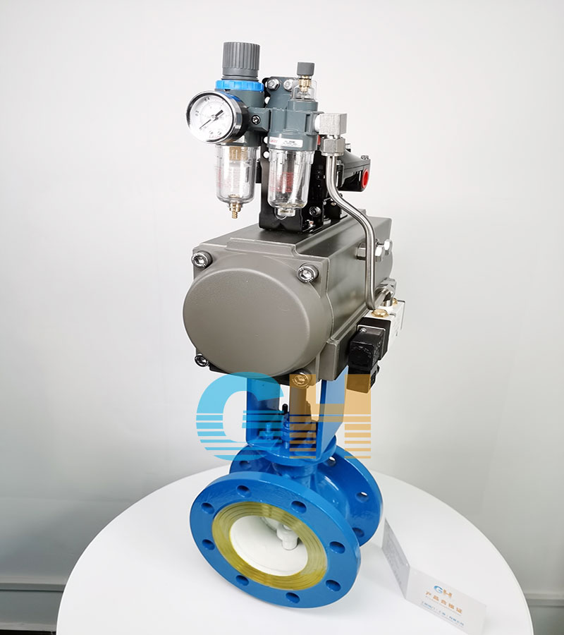 1、氣動金屬硬密封蝶閥采用三偏心密封結構,閥座與蝶板幾乎無磨損,具有越觀越緊的密封功能