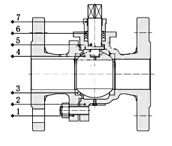 三、Q641F氣動(dòng)法蘭球閥主要零件材料: