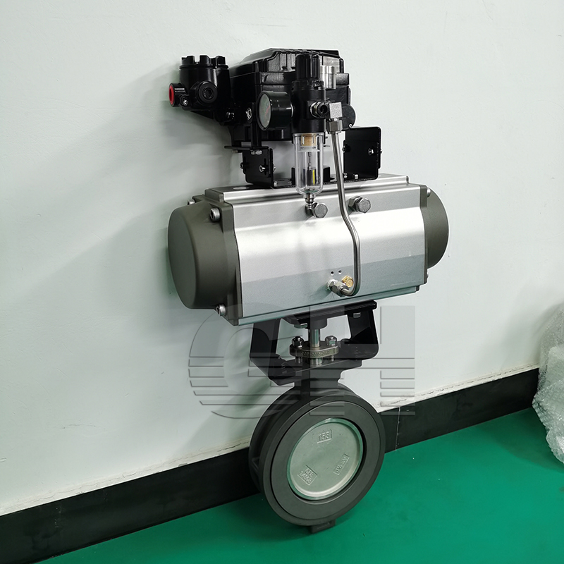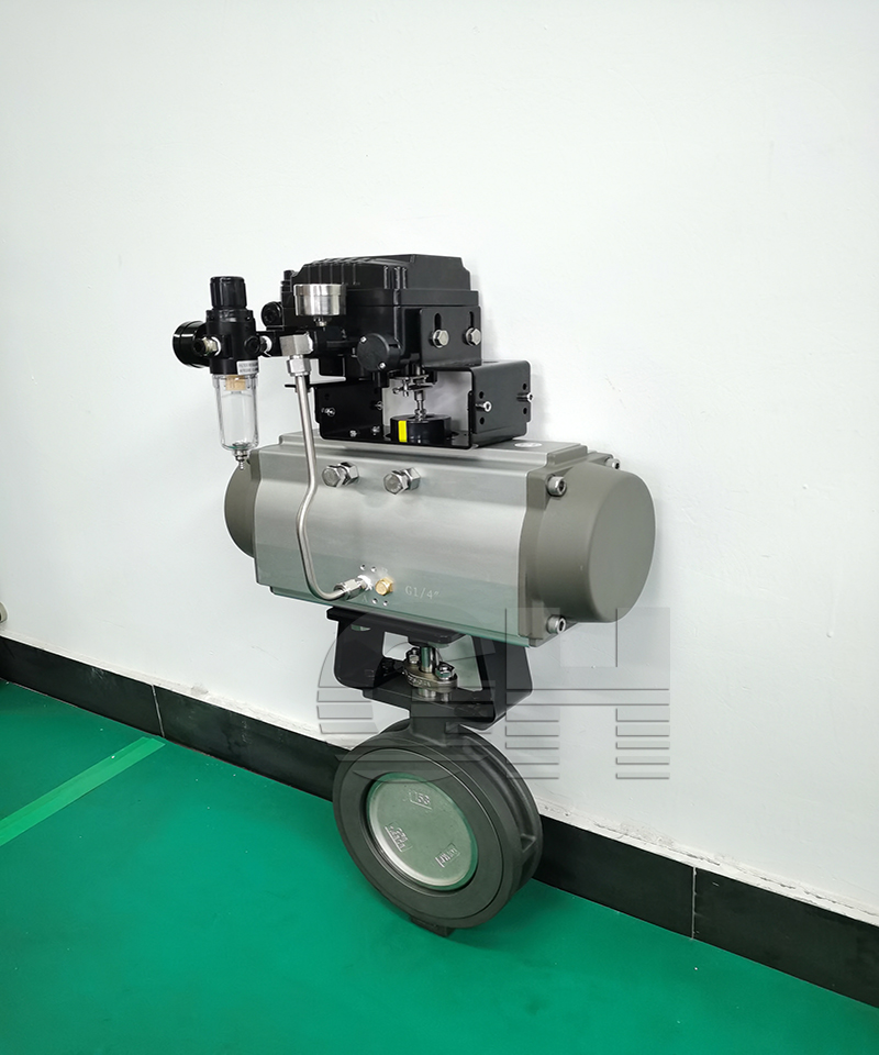 氣動對夾式硬密封蝶閥原理: