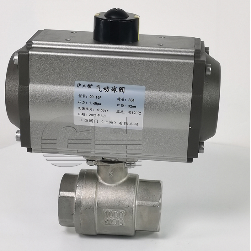 QD-16P二片式氣動(dòng)內(nèi)螺紋球閥 不銹鋼二片式氣動(dòng)球
