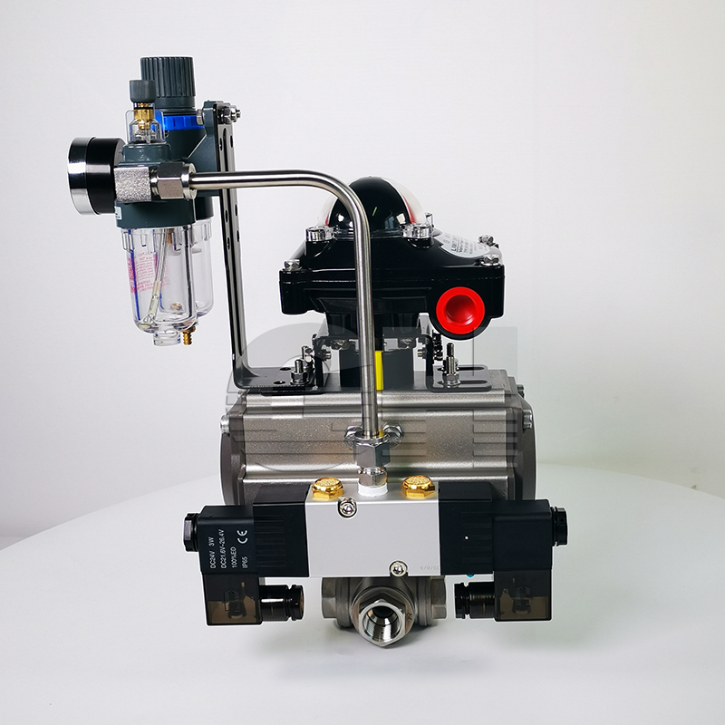 三通氣動球閥 L型三通球閥 不銹鋼三通球閥 Q614F氣動球閥 DN15 20 25 32 40 50 65 80希倫