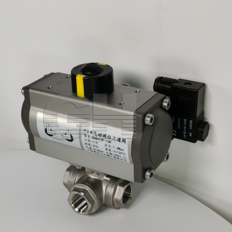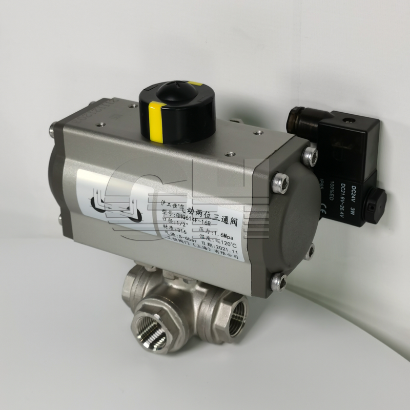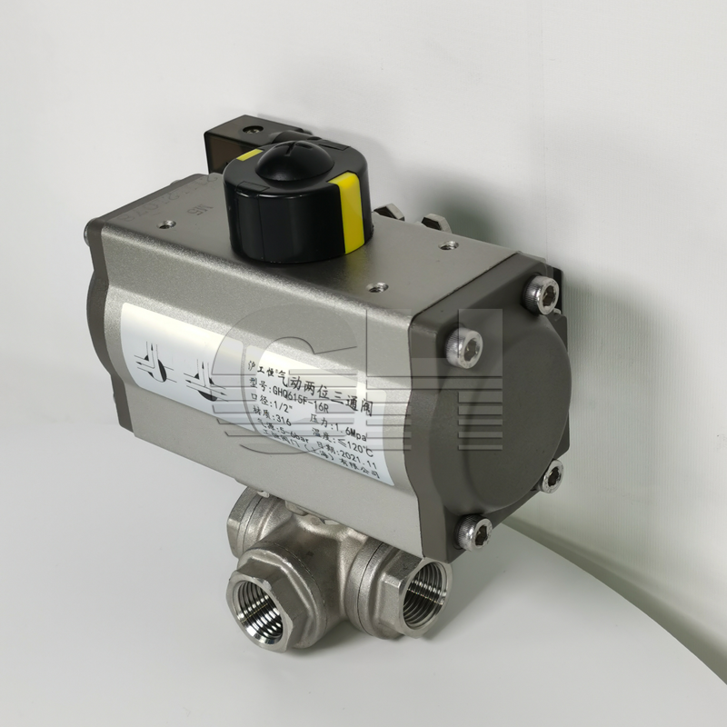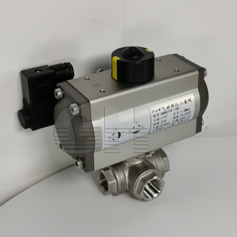 GHQ615F-16P內螺紋氣動三通球閥 氣動三通內絲球閥