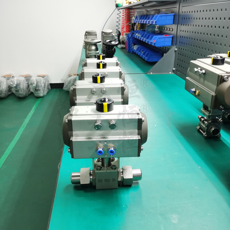 Q61F焊接式氣動高壓球閥是球閥配上氣動執行器。型號為Q621N-320P,公稱口徑是DN6-DN50,壓力為1.6-50MPa具有結構緊湊、體積小、運行可靠、安裝方便、安全、反應速度快、可選擇安全形式等優點。Q61F焊接式氣動高壓球閥采用板簧加載的可動閥座結構,閥座與球體不會產生卡阻或脫離等問題,密封可靠,使用壽命長。V型球閥閥芯設計成帶有特殊開關的V型缺口,流通能力大,壓力損失小,并具有的截流特性和控制功能,流量特性為近似等比。啟閉件采用V型球缺結構,完全解決了閥腔易沉積介質的問題。Q61F焊接式氣動高壓球閥具有特殊形狀的固定式V型切口球體和可調金屬閥座結構,當閥關閉時,V型切口與閥座形成楔形剪切作用,可防止球體和閥座之間污物產生的卡死現象,具有自清結功能,特別適用于含纖維料漿,污水和粘性顆粒的介質,配以閥門定位器可實現連續調節,并具流阻小,調節,是一種用途高質量的調節閥。