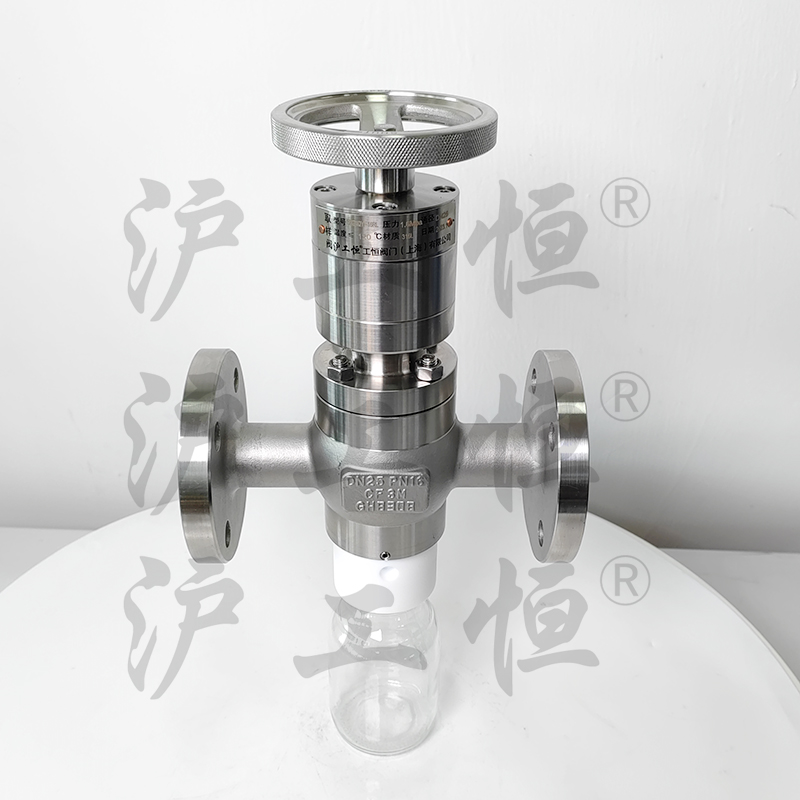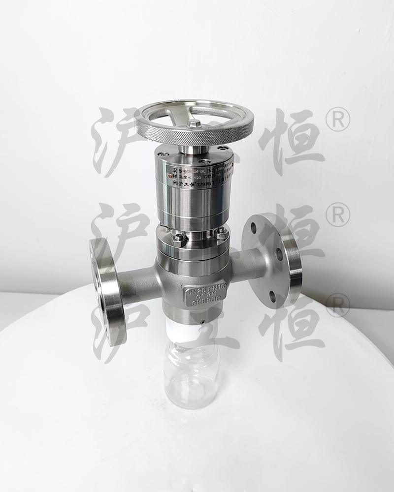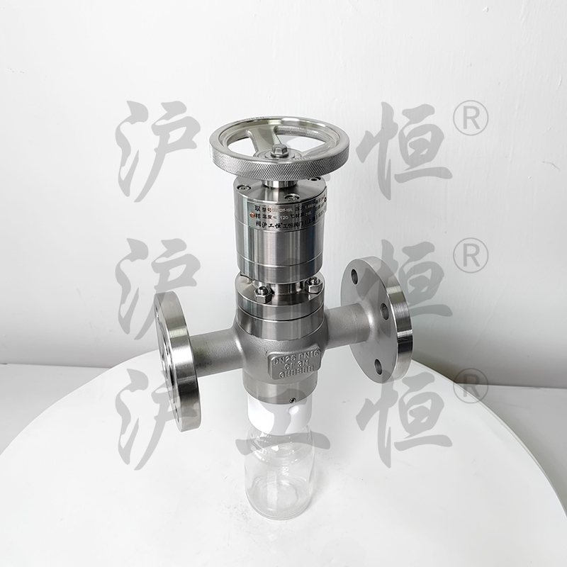 GHZXQYF-16RL-DN25不銹鋼在線取樣閥用于管線在線取樣,取樣介質真實, GHZXQYF-300LB美標高溫在線取樣閥主要有閥體、閥芯、閥桿、閥座、高溫填料、排氣口,取樣瓶組成,取樣瓶為可拆卸設計,試樣進入取樣瓶內,配套的瓶蓋可將取樣瓶密封,避免污染試樣,取樣閥流道無滯留、無流阻設計,不影響流量,閥桿通過手輪旋轉帶動閥桿及閥芯,閥芯上下提拉,可精確控制流量,精確控制取樣量,使試樣進入取樣瓶內,取樣瓶可選透明和避光兩種,本取樣閥廣泛應用在制藥、化工、食品行業。