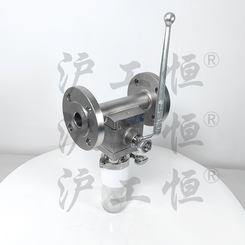 GHZXQYF-16RL手動(dòng)定量在線取樣閥解決了現(xiàn)有取樣閥的復(fù)雜結(jié)構(gòu),GHZXQYF-16RL手動(dòng)定量在線取樣閥主要有閥體、閥芯、閥桿、閥座、取樣瓶組成,取樣瓶為可拆卸設(shè)計(jì),試樣進(jìn)入取樣瓶內(nèi),可將取樣瓶密封,避免污染試樣,流道無流阻設(shè)計(jì),不影響流量,閥桿通過手柄、電動(dòng)執(zhí)行機(jī)構(gòu)、氣動(dòng)執(zhí)行機(jī)構(gòu)旋轉(zhuǎn)帶動(dòng)閥桿及閥芯使試樣進(jìn)入閥芯內(nèi),通過旋轉(zhuǎn)閥芯180°實(shí)現(xiàn)試樣進(jìn)入取樣瓶內(nèi),放樣的同時(shí),閥芯將取樣口關(guān)閉,從而做到零泄漏及無壓取樣,不會(huì)因開關(guān)閥門對取樣瓶造成壓力沖擊,從而保證操作者的安全。取樣瓶可選透明和避光兩種,本取樣閥廣泛應(yīng)用在制藥、化工、食品行業(yè)。