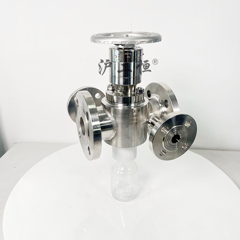 不銹鋼保溫在線取樣閥用于管線在線取樣,取樣介質(zhì)真實, GHZXQYF-300LB美標(biāo)高溫在線取樣閥主要有閥體、閥芯、閥桿、閥座、高溫填料、排氣口,取樣瓶組成,取樣瓶為可拆卸設(shè)計,試樣進入取樣瓶內(nèi),配套的瓶蓋可將取樣瓶密封,避免污染試樣,取樣閥流道無滯留、無流阻設(shè)計,不影響流量,閥桿通過手輪旋轉(zhuǎn)帶動閥桿及閥芯,閥芯上下提拉,可精確控制流量,精確控制取樣量,使試樣進入取樣瓶內(nèi),取樣瓶可選透明和避光兩種,本取樣閥廣泛應(yīng)用在制藥、化工、食品行業(yè)。