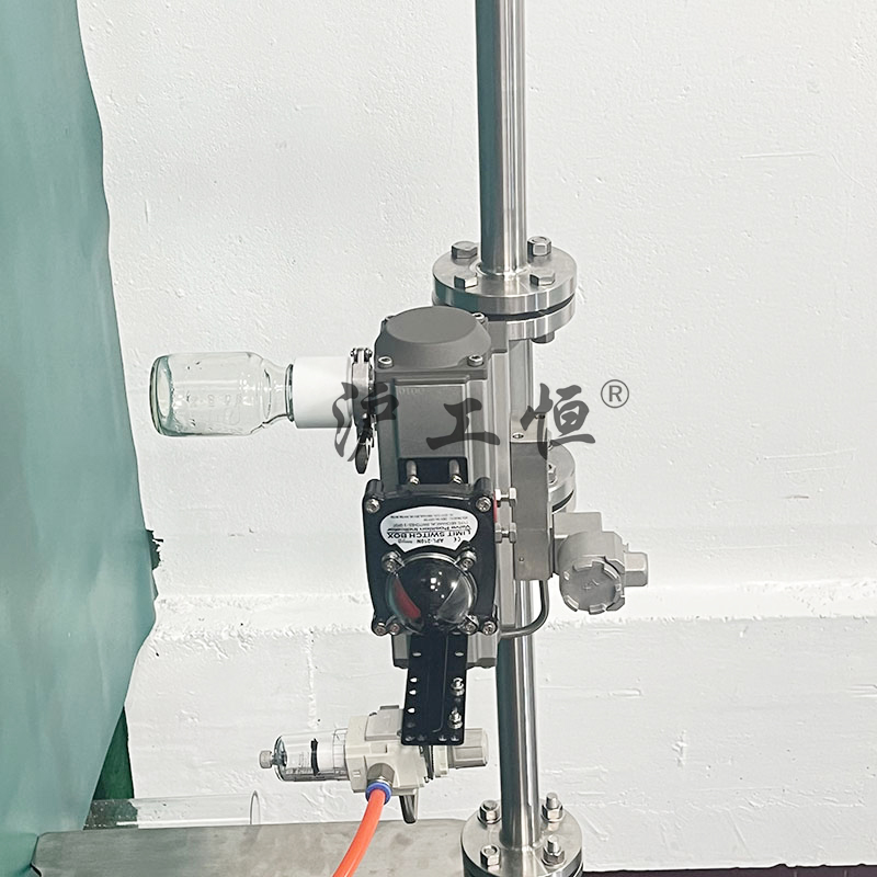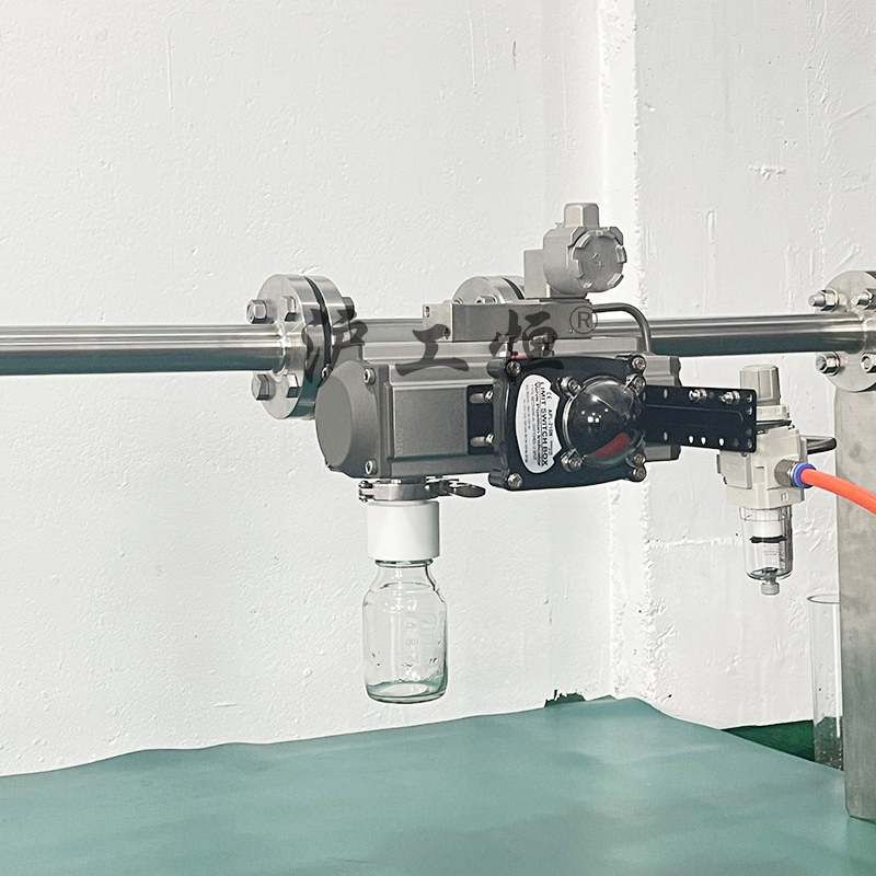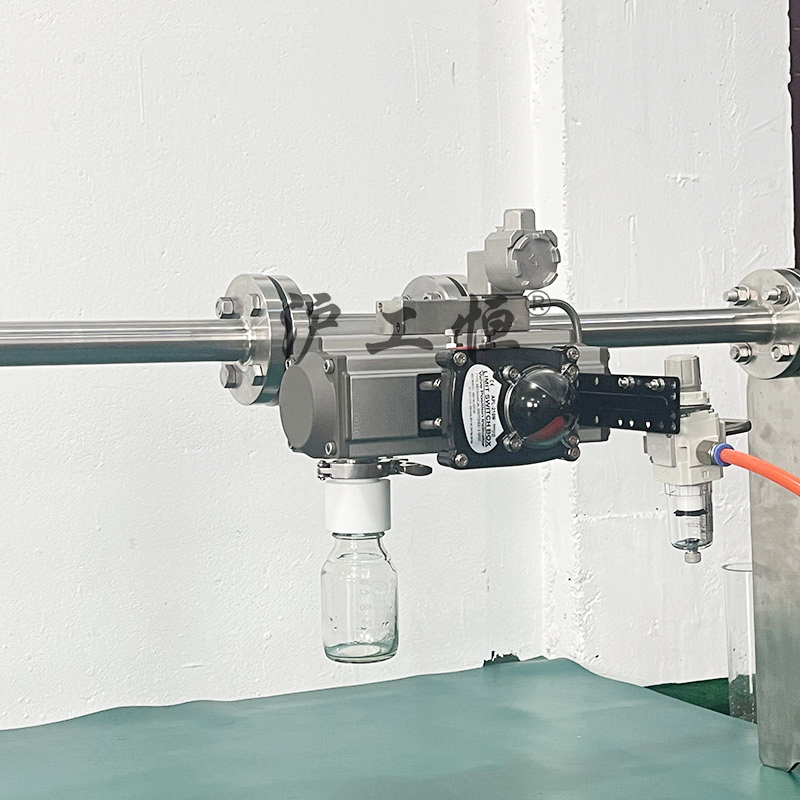 氣動定量取樣閥-配不銹鋼電磁閥,解決了現有取樣閥的復雜結構,取樣瓶采用PFA材質,可取樣為腐蝕性介質,氣動定量取樣閥-配不銹鋼電磁閥主要有閥體、閥芯、閥桿、閥座、密閉針、帶膜片取樣瓶組成,取樣瓶為可拆卸設計,試樣從入料針進入取樣瓶內,并通過排氣針排出壓力,使取樣瓶保持在常壓狀態(tài),取樣瓶品裝有橡膠膜可將取樣瓶密封,避免污染試樣,流道無流阻設計,不影響流量,閥桿通過手柄、電動執(zhí)行機構、氣動執(zhí)行機構旋轉帶動閥桿及閥芯,閥芯上下提拉,可精確控制流量,實現試樣進入取樣瓶內,取樣瓶可選透明和避光兩種,本取樣閥廣泛應用在制藥、化工、食品行業(yè)。