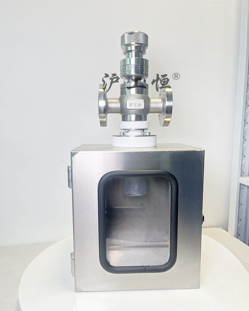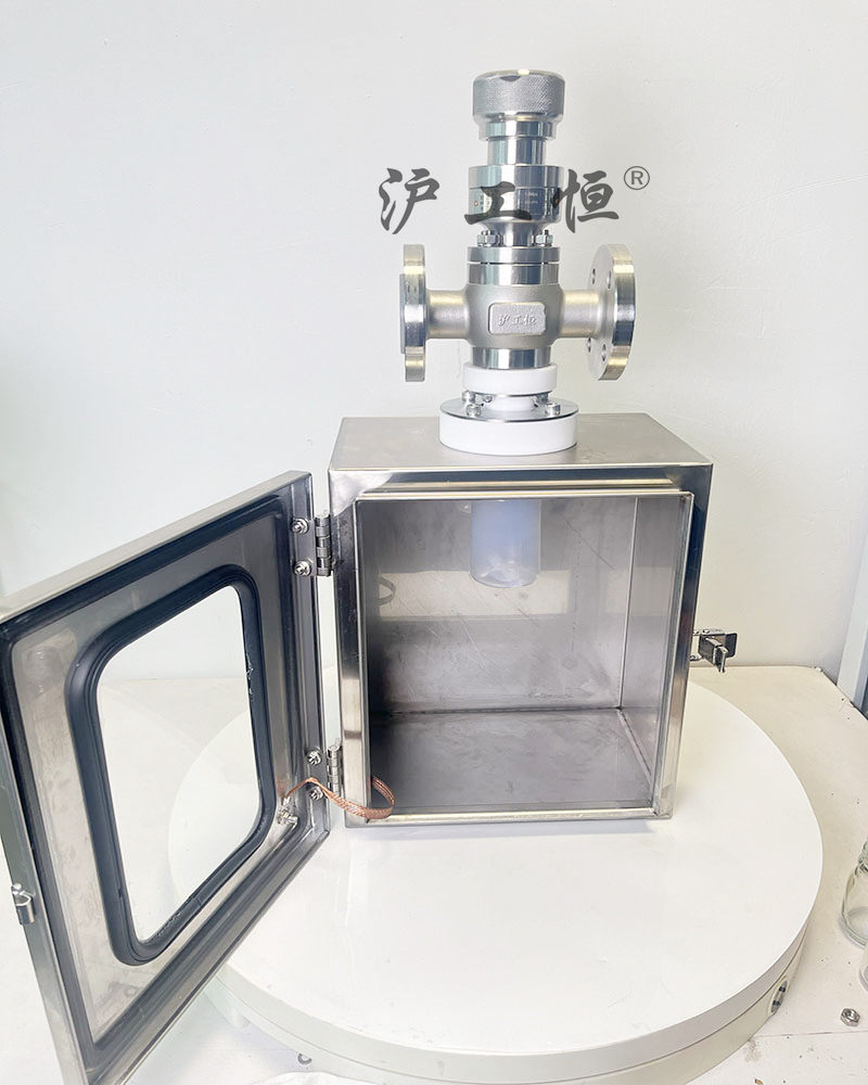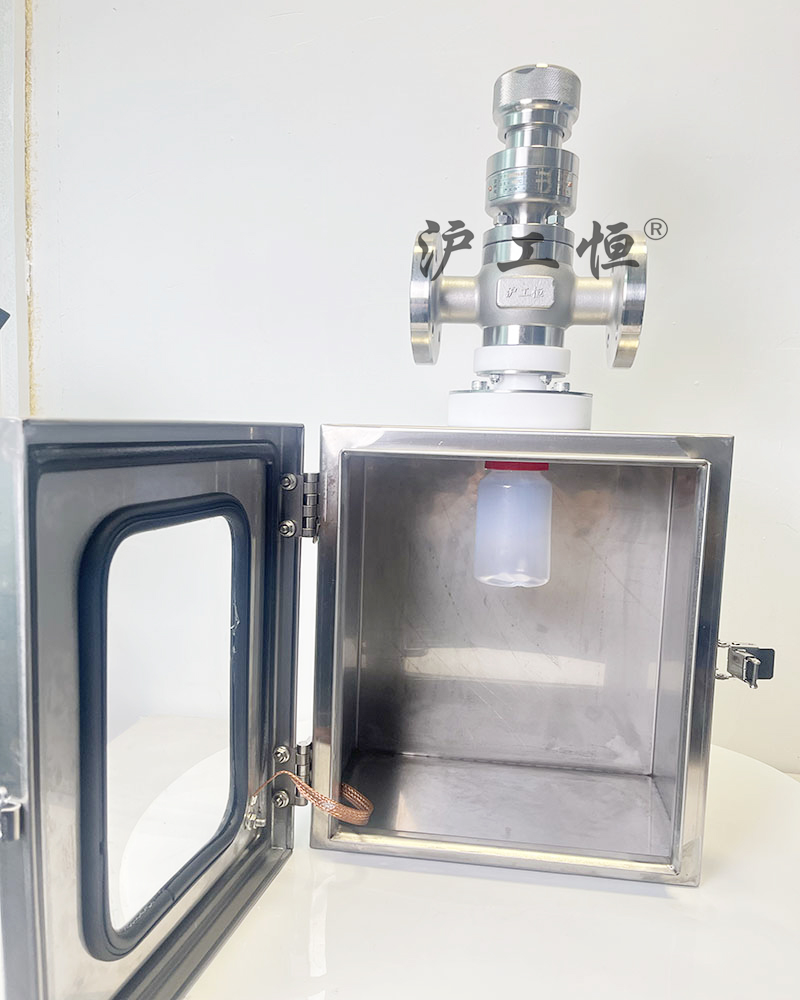 在線襯氟取樣閥-帶安全箱-PFA取樣瓶,解決了現有取樣閥的復雜結構,取樣瓶采用PFA材質,可取樣為腐蝕性介質,在線襯氟取樣閥-帶安全箱-PFA取樣瓶主要有閥體、閥芯、閥桿、閥座、密閉針、帶膜片取樣瓶組成,取樣瓶為可拆卸設計,試樣從入料針進入取樣瓶內,并通過排氣針排出壓力,使取樣瓶保持在常壓狀態,取樣瓶品裝有橡膠膜可將取樣瓶密封,避免污染試樣,流道無流阻設計,不影響流量,閥桿通過手柄、電動執行機構、氣動執行機構旋轉帶動閥桿及閥芯,閥芯上下提拉,可精確控制流量,實現試樣進入取樣瓶內,取樣瓶可選透明和避光兩種,本取樣閥廣泛應用在制藥、化工、食品行業。