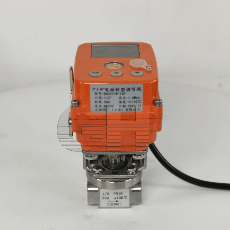 GHJ911W-16P針式小流量調節閥,電動內螺紋針型小流量調節閥是專門針對小流量調節而開發的小口徑調節閥,可廣泛控制各種氣體、液體、蒸汽的流量, Kv值可至0.01。因而可應用在許多需準確控制微小流量的場合,如精細化工、食品添加劑、醫藥、電子等行業。