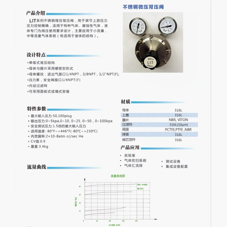 單級式減壓結構,母體與膜片采用硬密封形式,內設過濾網,可采用面板式或墻式安裝 實驗室 氣體吹掃系統 腐蝕性氣體、特種氣體 氣體匯流排 測試設備,采用超大面積膜片,適用于微小壓力場合。